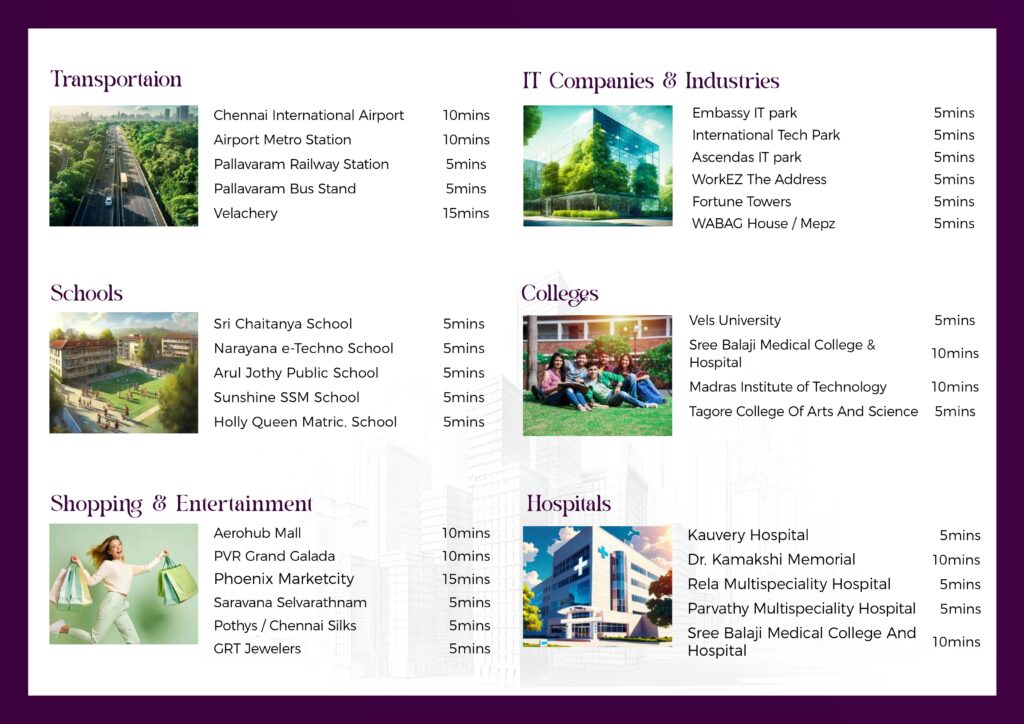 Discover the perfect blend of modern sophistication and serene living with VIVA-VIBRANT, a premium residential development located in the heart of Pallavaram on the prominent 200ft Radial Road. This exclusive 1.27-acre community offers 77 luxurious units across 10 expertly designed blocks, providing a peaceful haven while keeping you connected to the city’s pulse.